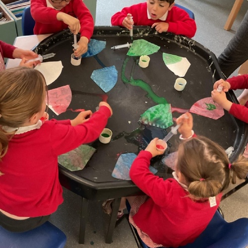 Snowy Owls begin every morning with a funky fingers activity to strengthen their hand and finger muscles and prepare their hands for writing. This week they used syringes to paint onto filter paper observing the colours mixing and changing.